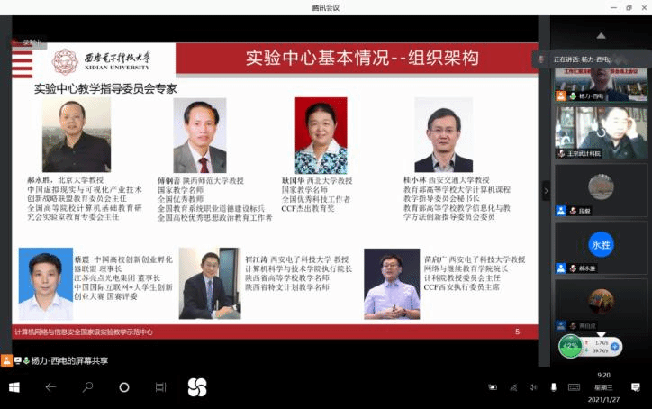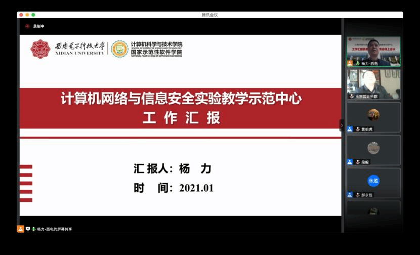 (通讯员 段毅 黄伯虎)1月27日上午,计算机网络与信息安全国家级实验教学示范中心通过腾讯会议举行了“工作汇报及教学指导委员会线上会议”。参加此次会议的教学指导委员会专家有:北京大学郝永胜教授、陕西师范大学傅钢善教授、西北大学耿国华教授、西安交通大学桂小林教授、中国高校创新创业孵化器联盟理事长蔡震、必赢线路检测3003no1崔江涛教授和苗启广教授。学校及学院参会代表有:学校实验室与设备处副处长(主持工作)韩卿、学院教学副院长万波,实验示范中心主任杨力、副主任贾文、王宗武、黄伯虎、张跃宇及实验示范中心教师等30余人。本次会议由杨力主任和郝永胜教授共同主持。