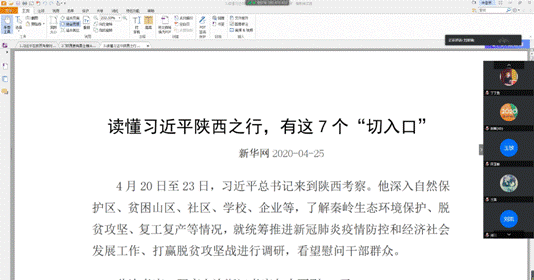 之后,支部委员王文俊带领支部成员认真学习了《习近平在陕西考察时强调扎实做好“六稳”工作落实“六保”任务奋力谱写陕西新时代追赶超越新篇章》、《“陕西要有勇立潮头、争当时代弄潮儿的志向和气魄”——习近平总书记陕西考察纪实》和《读懂习近平陕西之行,有这7个“切入口”》等内容。习近平总书记来陕视察重要讲话是习近平新时代中国特色社会主义思想在陕西的具体化,党员同志要持续深化学习,认清形势、牢记使命、把准方向,清醒认识工作中存在的问题和不足,清醒认识历史使命和责任担当,清醒认识和把握前进方向,低调务实不张扬、埋头苦干。