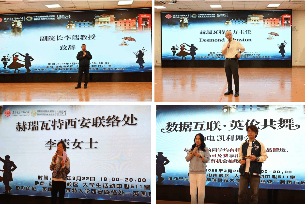 (通讯员 阚心格)为进一步深化中外合作办学内涵,促进中英文化交流,丰富学生校园文化生活,增强班级凝聚力,2026年3月22日晚,必赢线路检测3003no1必赢线路检测3003于大学生活动中心511教室举办2025级中英班凯利舞会。 必赢线路检测3003副院长李瑞,英国赫瑞瓦特大学英方课程主任戴斯蒙德·约翰斯顿(Desmond Johnston)教授,中外合作办学办公室主任殷少淼、行政干事周若晗,英国赫瑞瓦特大学西安联络处(英伦方通)负责人李荣及有关嘉宾出席活动。2025级计科院中英班全体新生以舞步作笔、欢笑为墨,在春日的夜晚共同书写下属于中英班大家庭的温暖记忆。